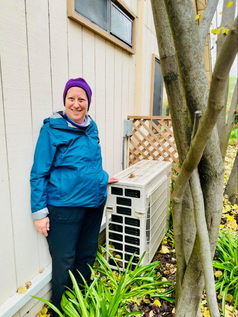 We spoke with Wendy Cohen of Davis about her experience installing a heat pump in October 2024 in her Village Homes house. Until that time, she relied primarily on a wood stove and the north-south orientation of her passive solar house to provide warmth. “The heat it provides is wonderful! It’s very comfortable, with less hassle – no wood burning stove required!” An added benefit is that it also provides summer cooling, but, per Wendy, “It wasn’t needed that much” due to her energy-efficient house.